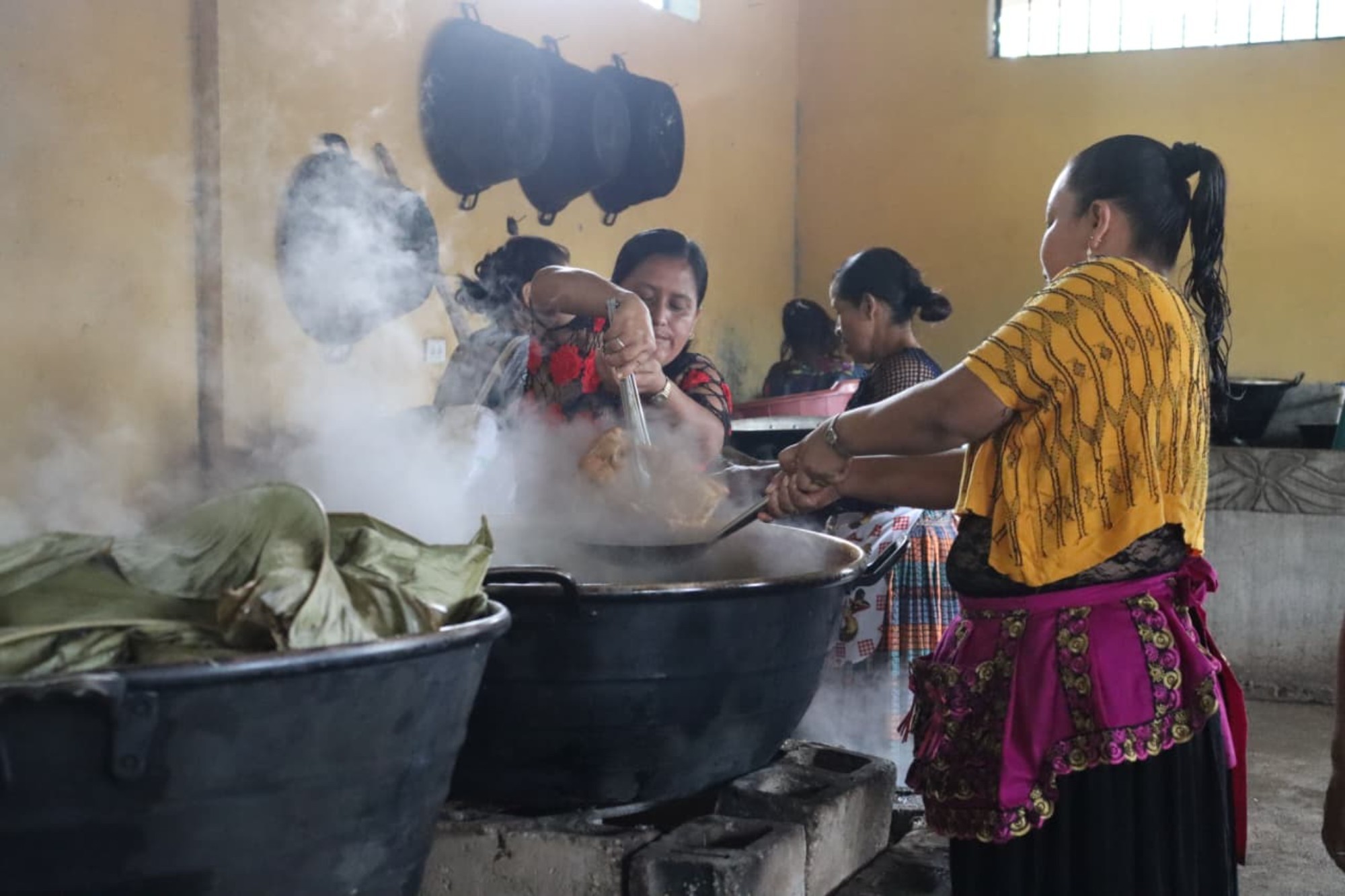 Mujeres preparan comida para la convivencia comunitaria. Foto de Juan Bautista Xol