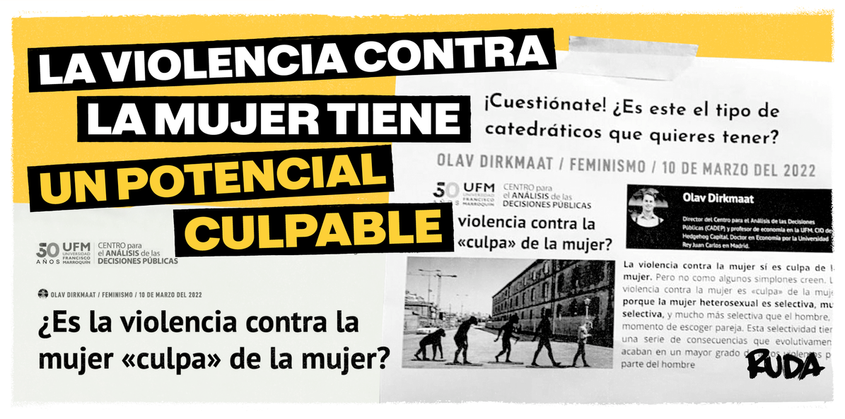 El 10 de marzo el doctor en economía y catedrático de la Universidad Francisco Marroquín (UFM), Olav Dirkmaat, salió de su disciplina y publicó su opinión sobre una problemática que por varios siglos mujeres y feministas han explicado hasta el cansancio: la violencia contra las mujeres. Lo hizo culpando a las mujeres y comparando datos de una aplicación de citas (Tinder) con las 60 mil denuncias que mujeres han presentado ante el Ministerio Público, las 72 mil niñas y adolescentes embarazadas, las 4 mujeres que desaparecen diariamente, violencias que no suceden porque “las mujeres son selectivas”, como describe Dirkmaat. Las explicaciones sobre la violencia dan cuenta de que notoriamente los agresores son hombres, en muchos casos cercanos a las sobrevivientes.