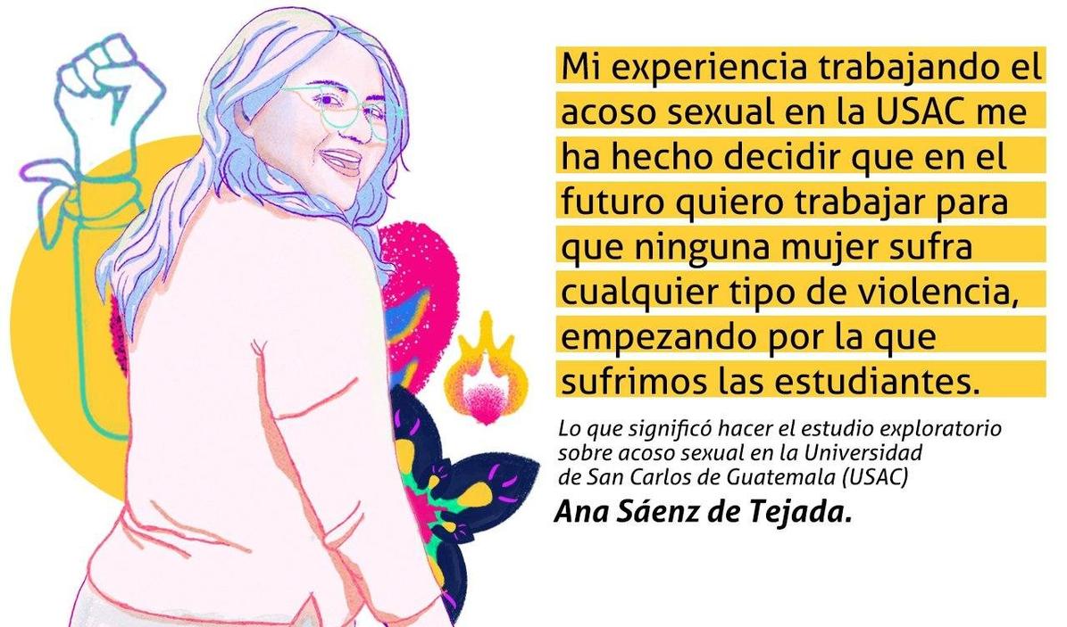 principios del 2018 fui electa como Secretaria de la Comisión de Género de la Asociación de Estudiantes Universitarios “Oliverio Castañeda de León” (AEU), la máxima organización estudiantil de Guatemala. Luego de 17 años de inactividad debido a la cooptación de la AEU por parte de grupos delictivos, creíamos adecuado que existiera una comisión de trabajo encargada exclusivamente de lo que estaba afectando a las estudiantes. En ese entonces yo contaba con un fundamento teórico feminista bastante fuerte. La idea que tenía, como secretaria de género, era hacer distintas actividades para las estudiantes donde pudiéramos discutir los temas que nos afectaban como mujeres, y aprender más sobre feminismo. En realidad, las situaciones que vivían las estudiantes me llevaron por otro rumbo.