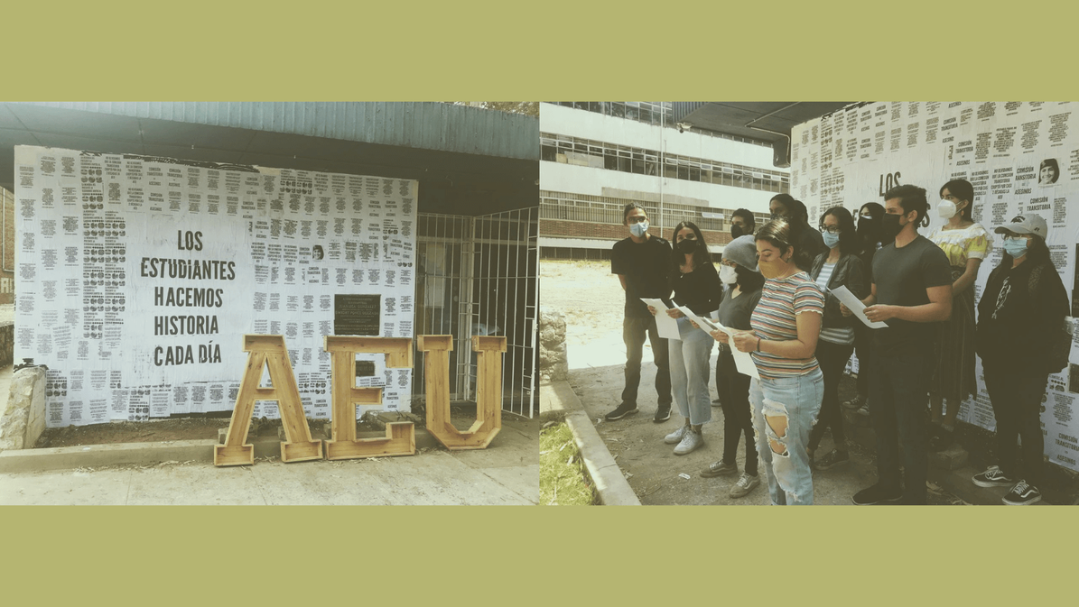 La Asociación de Estudiantes Universitarios “Oliverio Castañeda de León” -AEU- junto con el Consejo Consultivo Estudiantil Universitario –CCEU- presentaron hoy públicamente su denuncia sobre las acciones de comités de huelga, que durante el fin de semana se acercaron a la sede estudiantil para pintar sus paredes. Estos son los mismos grupos denunciados en enero de 2020 por propiciar iniciaciones al “Honorable Comité de Huelga” intoxicando y agrediendo sexualmente a mujeres estudiantes. La AEU señaló los vínculos de los comités de huelga con el periodo de captura de la AEU que durante 17 años no fue electa de manera democrática.