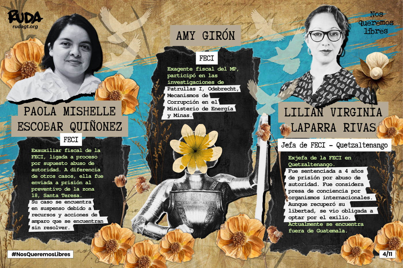 Una de ellas, Claudia González, fue mandataria de la CICIG. Las mandatarias como González y Santizo, abogadas con experiencia en investigación, litigio, derecho penal y derechos humanos, eran las profesionales guatemaltecas a las que la CICIG encomendó el litigio de casos complejos y el acompañamiento a los fiscales del MP durante la presentación de esos procesos. González y Gálvez también defendieron a Leily Santizo cuando la persecución a operadoras de justicia se hizo más evidente.