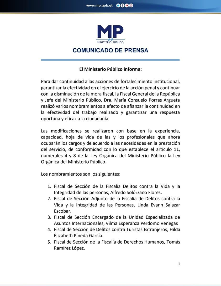 “Cada vez que el Ministerio Público hace un cambio importante cambia seis o más fiscalías al mismo tiempo para dispersar el desgaste político que sería cambiar una sola Fiscalía. De esa manera se hizo con Juan Francisco Sandoval. En esta oportunidad, se realizaron cambios en once fiscalías, el que llamó más la atención fue el de Hilda Pineda que pasó de una fiscalía de Derechos Humanos donde alcanzó alta profesionalización, a dirigir una fiscalía recién creada de delitos contra turistas”.