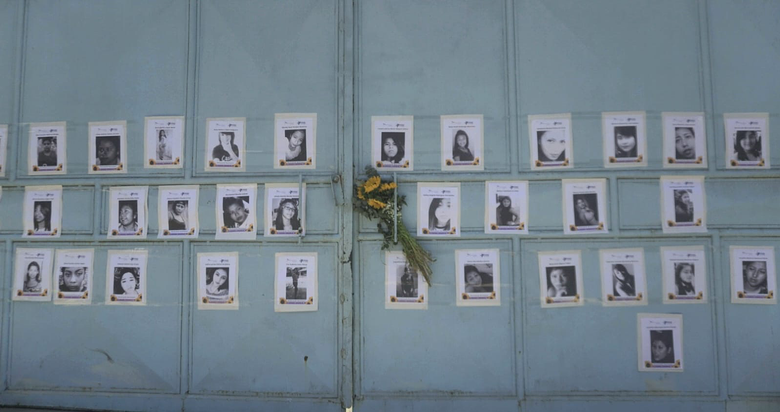 Familiares de las sobrevivientes y activistas colocaron fotografías de las víctimas del incendio en el Hogar “Seguro”. Foto: Isabel Arévalo