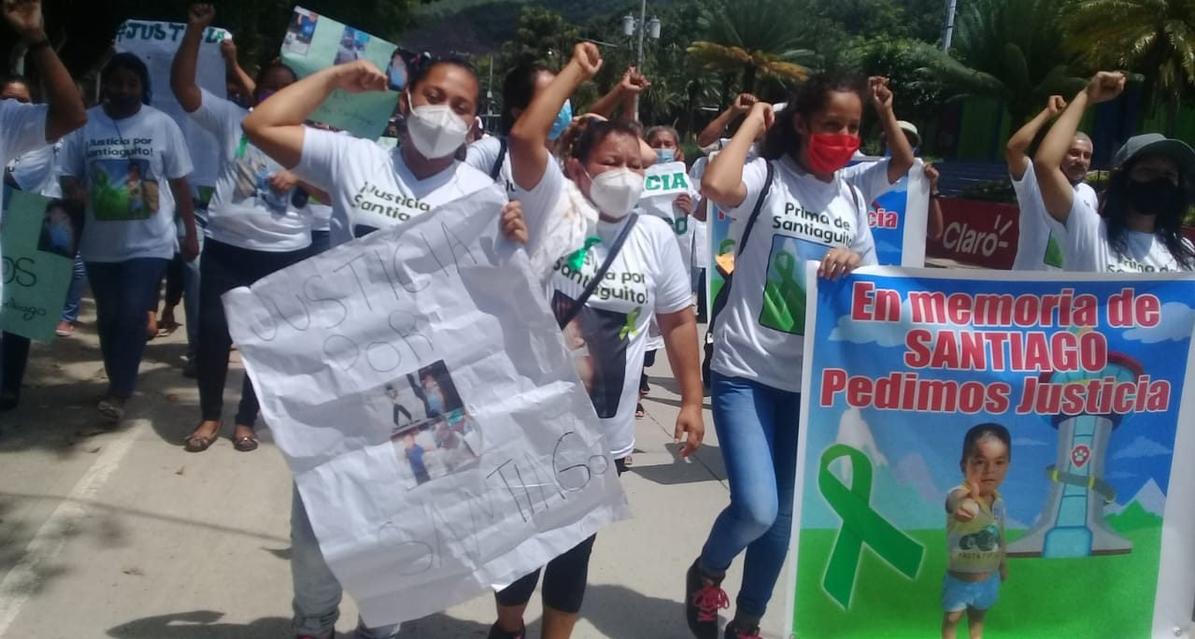 Familiares y vecinos de Luis Santiago López “Santiaguito” de 5 años, salieron el viernes 4 de septiembre a manifestar pacíficamente, exigiendo justicia y una investigación pronta a las autoridades por el secuestro, violación, tortura y asesinato del niño. La manifestación inició en la Aldea el Manzanal en San Cristóbal Acasaguastlán, dirigiéndose hacia Guastatoya, en El Progreso. Santiaguito desapareció al mediodía del sábado 25 de agosto, después de ser invitado a pescar por uno de los tres adolescentes aparentemente implicados en el crimen, quienes se encuentran en libertad. Fue encontrado el domingo 26 por la mañana, al fondo de un pozo, muerto, con señales de violencia y amarrado de sus manos.