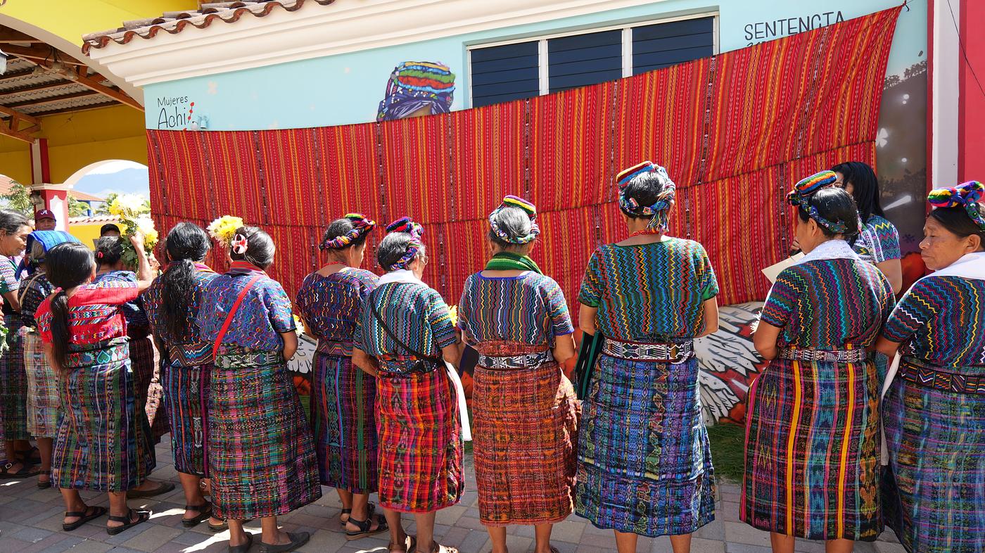 Mujeres Achi’ momentos antes de que se develara el mural. Foto Santiago Botón