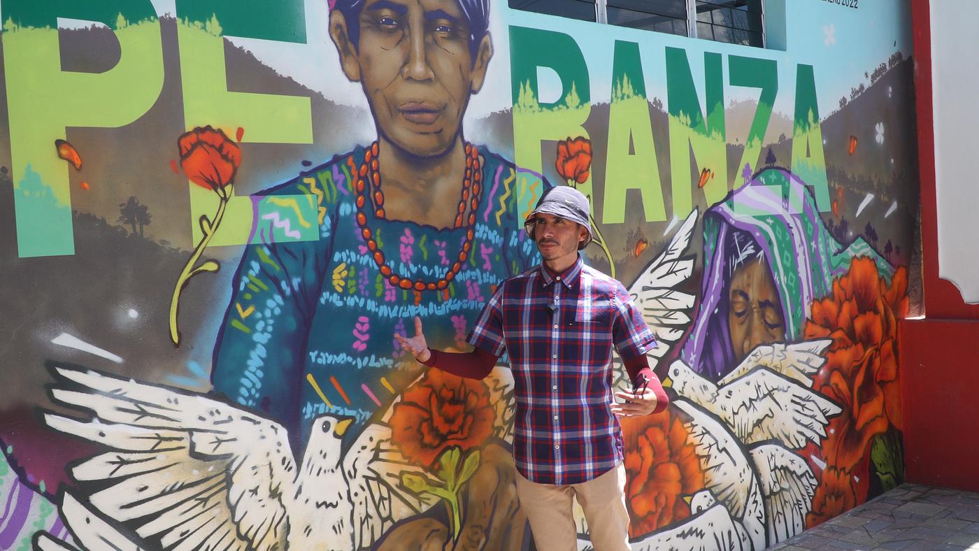 “El graffiti nació como una forma de manifestación frente a las realidades políticas y sociales. En este mural quise representar la lucha de las mujeres Achi’ y su esperanza de justicia”, explicó Argueta.