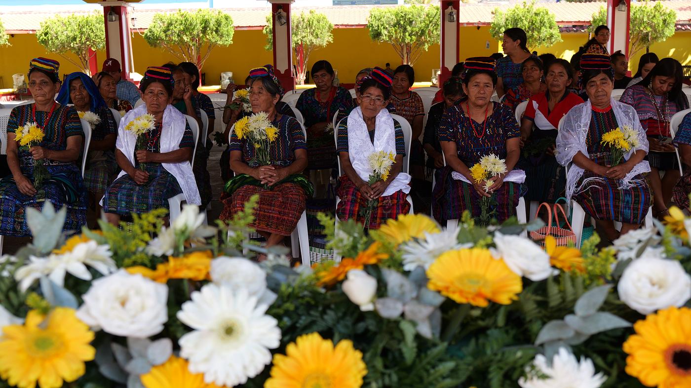 Organizaciones, sobrevivientes y abogadas participan en una ceremonia en Rabinal el 7 de marzo. Foto Santiago Botón