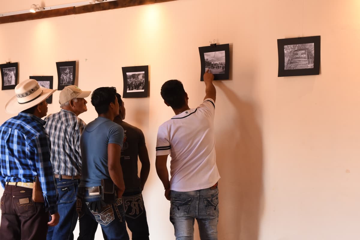 Líderes comunitarios observan las fotografías de la exposición “En el silencio de la Galera”. Foto de Prensa Comunitaria