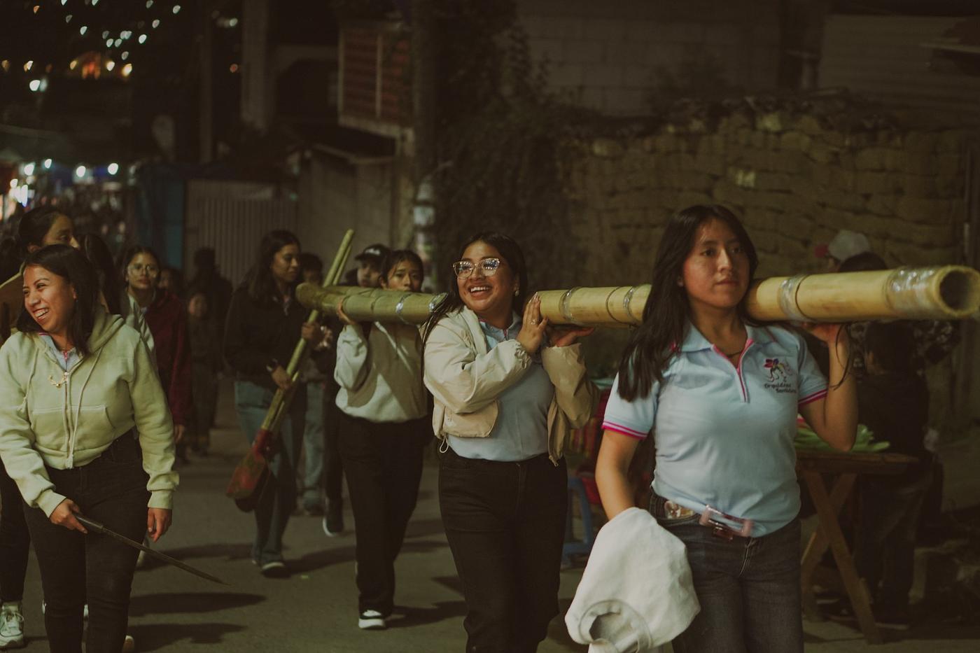 Mientras las observo, recuerdo lo que Sara me contó: que cuando empezó, ser mujer y barriletera era casi un acto de rebeldía. “Nos miraban raro”, me dijo. “Decían que las mujeres debíamos estar en la casa, no en el campo con los hombres, mucho menos armando barriletes”. En los primeros años no les permitían participar en la recolección del bambú, decían que “estorbaban”. Pero ellas insistieron, año tras año. Desde hace tres, por fin pueden integrarse en todas las fases del proceso.