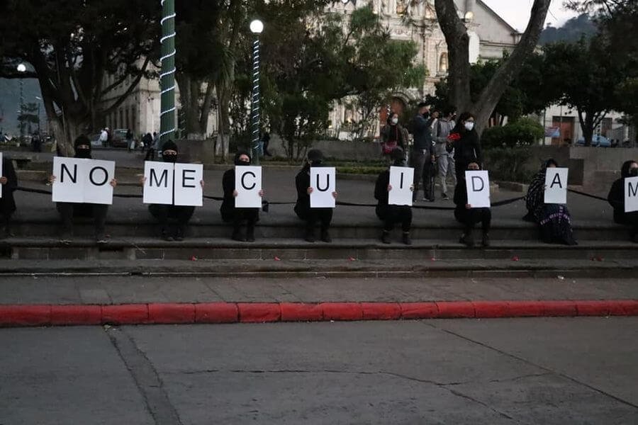 En Quetzaltenango, distintas colectivas hicieron acciones. De negro y en silencio, al menos 50 mujeres se reunieron en el Parque Central de Xela portando carteles con letras que formaron la frase “la policía no me cuida, me cuidan mis amigas” y “alzo mi voz por las desaparecidas”, como pronunciamiento por la violencia patriarcal a mujeres.