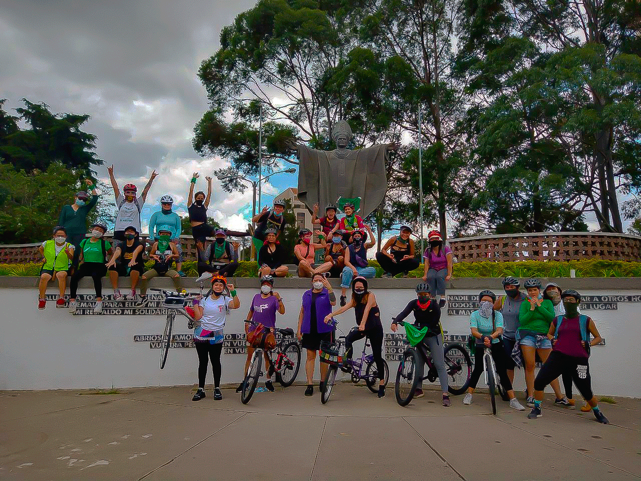 En el marco del 28 de septiembre, la colectiva feminista “Chicas al Pedal”, convocó una pedaleada como acción de posicionamiento en las calles, “por el derecho a apropiarnos de los espacios, incluyendo nuestros cuerpos”, decía la información. El punto de reunión fue el Parque Morazán, en la zona 2 de la Ciudad de Guatemala. A eso de las 10 de la mañana, ya había varias mujeres a la espera de sus compañeras para emprender la ruta. Algunas portaban pañuelo verde, rótulos con consignas feministas en sus mochilas o bicicletas o algún objeto verde, como blusas o mascarillas.