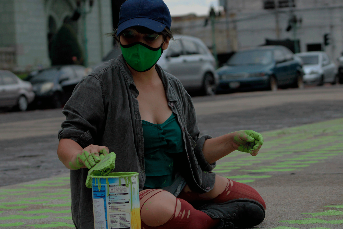 Además, también explicaron que harían un performance como llamamiento de justicia y pronunciamiento por los aterradores datos de niñas violadas y embarazadas en lo que va del año. Llevaban una cubeta de pintura verde y stencils para pintar el suelo de la Plaza de las Niñas, con la frase “Niñas no madres” y el número impactante “2,289”, por todas las niñas de 10 a 14 años embarazadas.