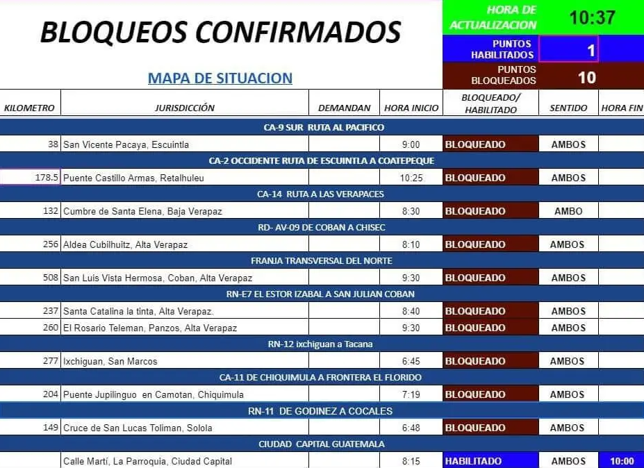 Antes de las 7:00 de la mañana, algunas calles principales de la capital como La Martí, la Sexta Avenida y Gerona en zona 1 fueron tapadas por los manifestantes. Conforme el día avanzó otros inconformes del Gobierno se unieron en el bloqueo de las calles para protestar pacíficamente.
