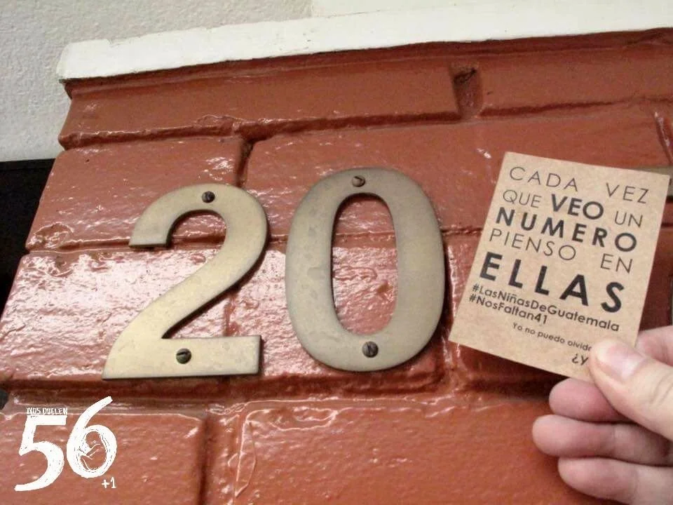Parte de la campaña son las fotografías de la psicóloga guatemalteca, Andrea Bonilla, quien en su momento fue voluntaria en la morgue, durante la emergencia resultado de este crimen. En ellas Andrea utiliza números que aparecen en la cotidianidad y los relaciona con las 41 adolescentes que murieron calcinadas. Cada fotografía incluye un texto que dice “Cada vez que veo un número pienso en ellas”, y los hashtags #LasNiñasdeGuatemala #NosFaltan41.