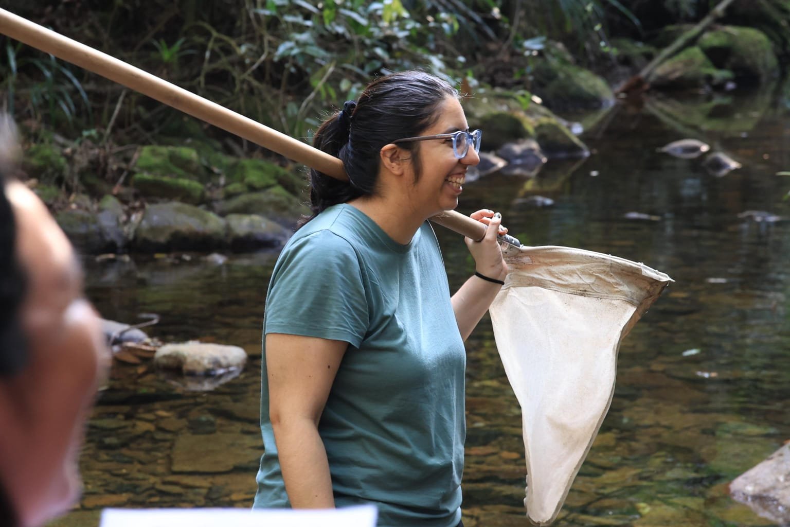 “Mi tesis fue en una cuenca más pequeña y este año hemos expandido el monitoreo. Aunque no soy bióloga, he trabajado en identificar las dificultades técnicas y simplificar el proceso de identificación de macros”.