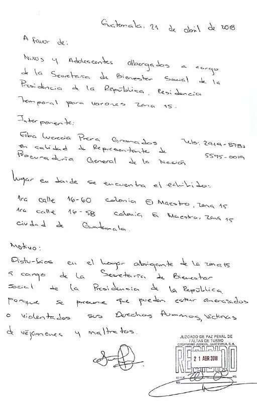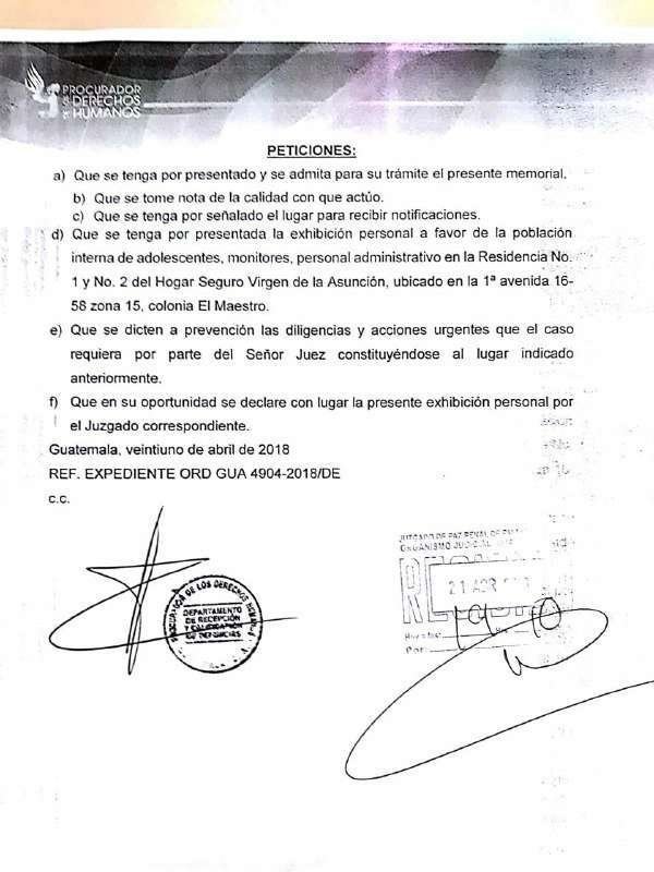La Procuraduría de los Derechos Humanos (PDH) y la Procuraduría General de la Nación (PGN) interpusieron dos exhibiciones personales que posteriormente fueron practicadas por el juez de Paz, Hugo Ramírez.