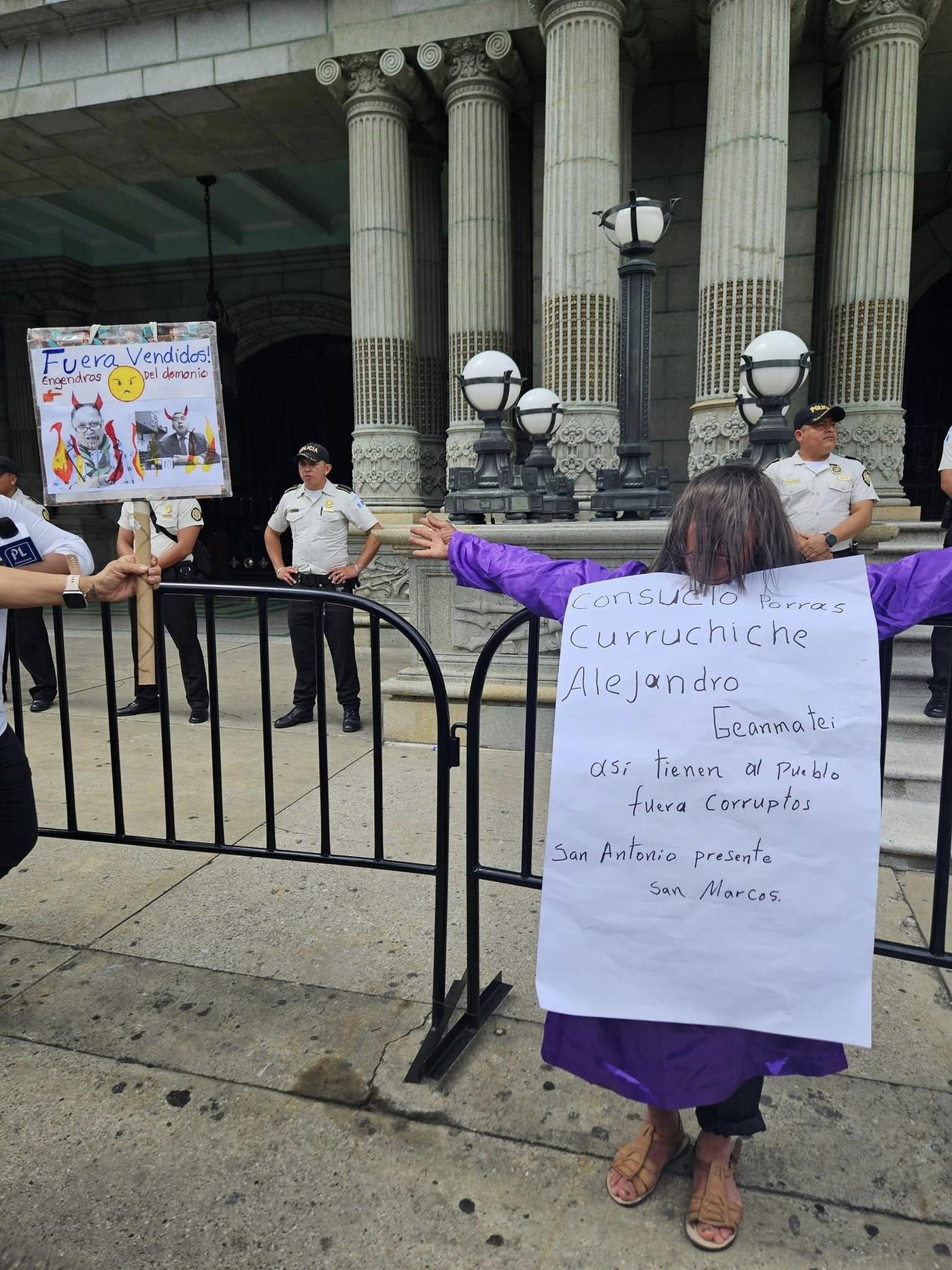 Los afiliados a la asociación de jubiladas y jubilados de Quetzaltenango, también se sumaron a las acciones de protesta y llegaron al Parque Centroamérica para manifestarse en contra del golpe de Estado y para mostrar su respaldo al presidente electo Bernardo Arévalo y su vicepresidenta Karin Herrera.