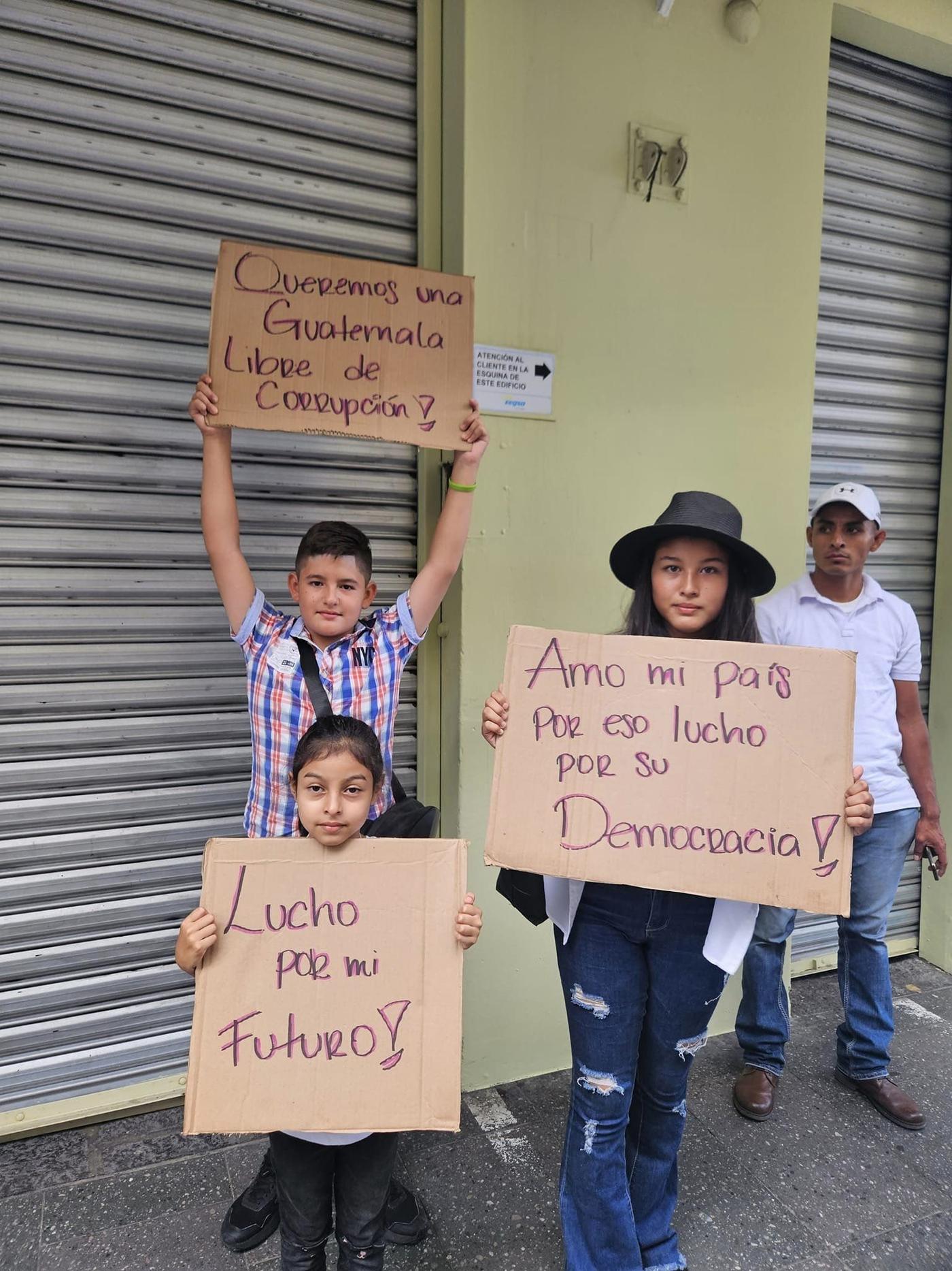 “Nuestros hijos merecen un país sin corrupción” “Fuera corruptos” “Somos los de abajo, los del pueblo. Exigimos a Concuelo Porras que se largue”, “Fuera Pacto de Corruptos”, “Renuncie Consuelo Porras y Rafael Curruchiche”, fueron algunos de los mensajes que se leían en los carteles portados por las familias manifestantes.
