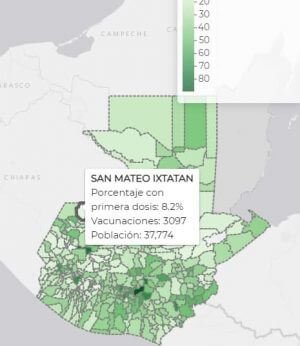 Es importante considerar que la vacunación en Huehuetenango, según el MSPAS, inició la primera semana de mayo, con la segunda fase del plan, en la que se podía comenzar a vacunar a personas mayores de setenta años. Las primeras dosis llegaron a San Mateo Ixtatán el 7 de mayo. Si hasta la fecha solo se ha inmunizado a 3 mil 97 personas con primera dosis, significaría que durante cinco meses se ha vacunado en promedio a 619 personas al mes, aproximadamente 20 personas diarias.