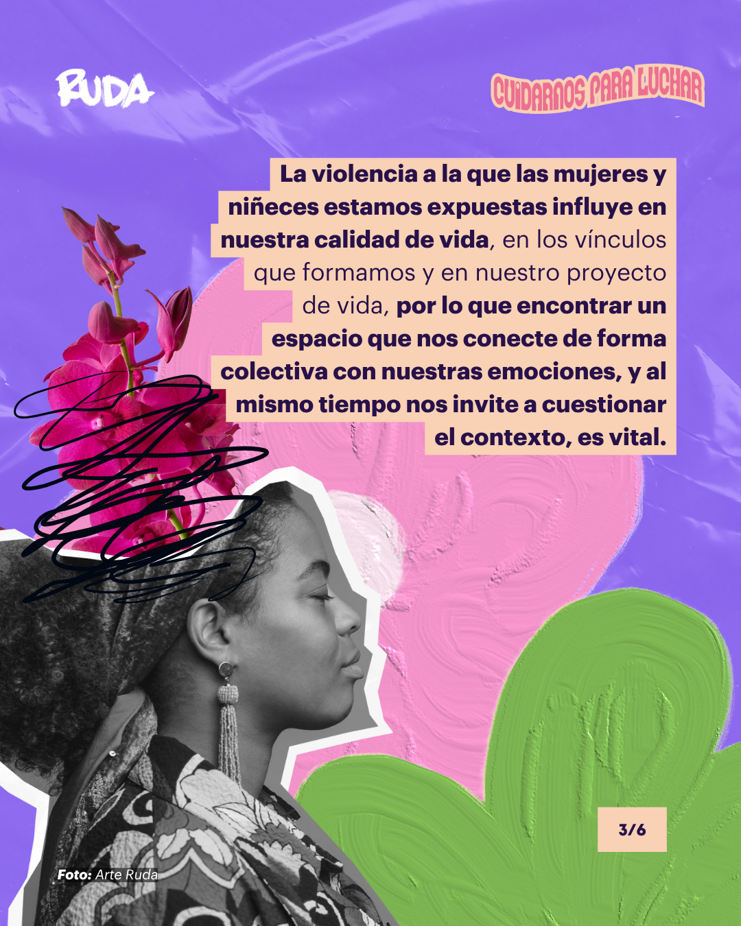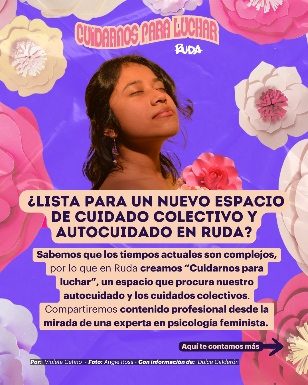 Sabemos que los tiempos actuales son complejos, por lo que en Ruda creamos “Cuidarnos para Luchar”, un espacio que procura nuestro autocuidado y los cuidados colectivos. Compartiremos contenido profesional desde la mirada de Dulce Calderón, experta en psicología feminista. Aquí te contamos más: