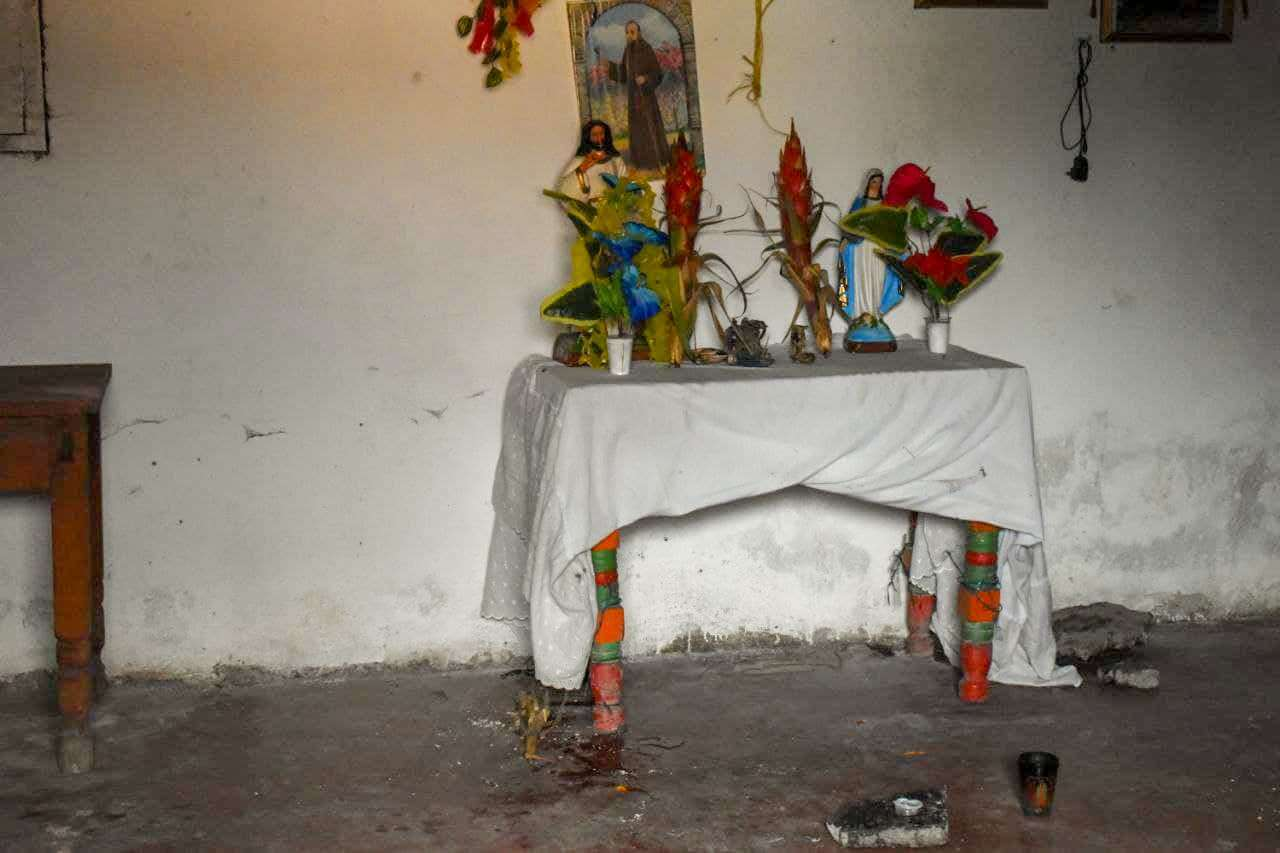 El lugar donde entrevistamos a la familia de Juana Alonzo, fue en la casa de su mamá, doña Catarina Santizo, hecha de concreto con lámina, en donde solo hay camas, el altar para pedir por la libertad de Juana y dos filas de mazorcas colgadas en el tapanco.
