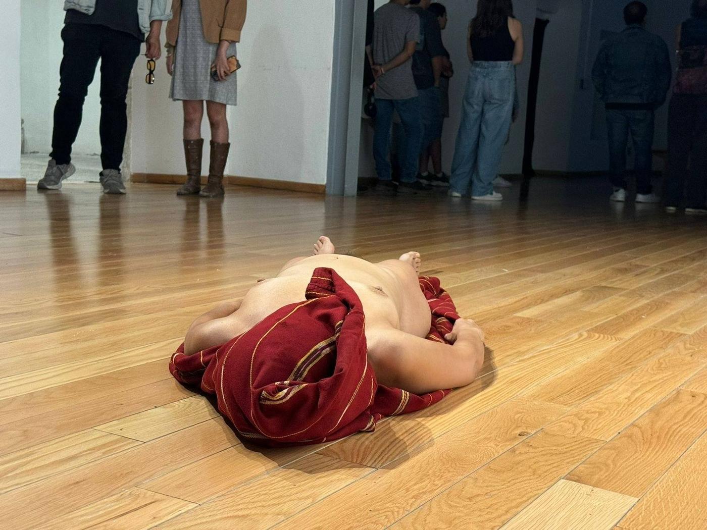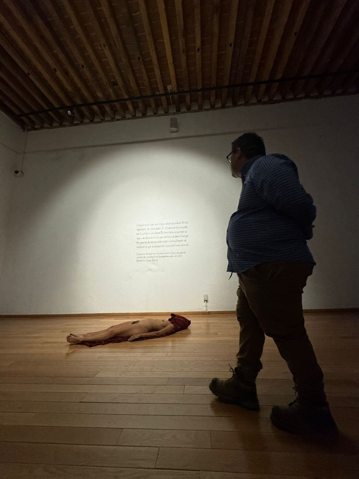 Durante la apertura realizó el performance Desnuda me dejaron, basado en el testimonio de una mujer maya ixil, escuchado durante el juicio de genocidio contra el general retirado Benedicto Lucas García que comenzó el 5 de abril de este año, en el Tribunal de Mayor Riesgo A.