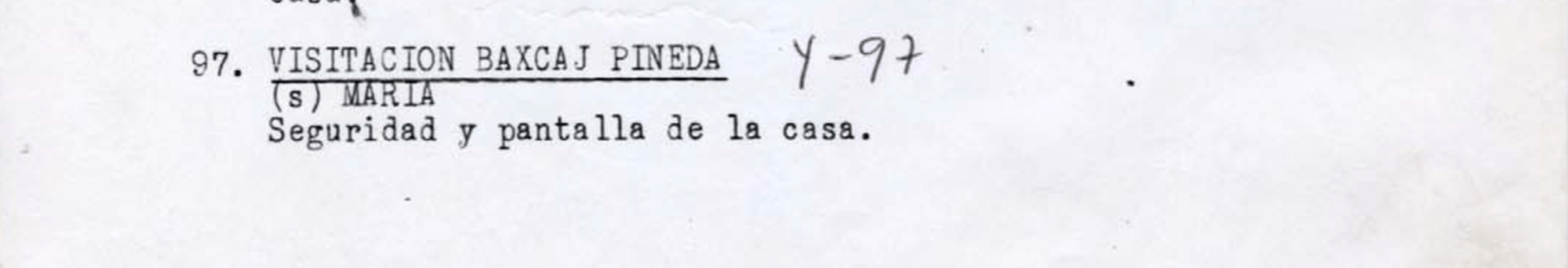 14. Visitación Baxcaj Pineda: Señalada de ser seguridad y pantalla de una casa donde se realizaban reuniones de la insurgencia. No refiere fecha de captura.