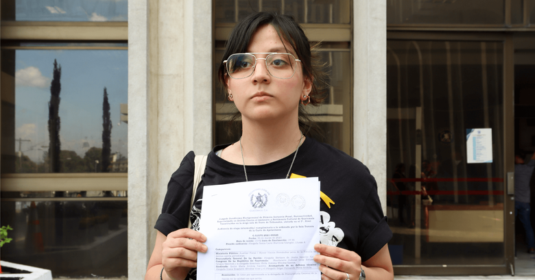 En esa audiencia Dulce Archila fue acusada por el Ministerio Público (MP) porque habría causado disturbios en el Congreso de la República durante una manifestación el 21 de noviembre de 2020, lo que implicaría el delito de “Depredación de los Bienes Culturales” por supuestamente realizar unas pintas sobre la fachada del Congreso.