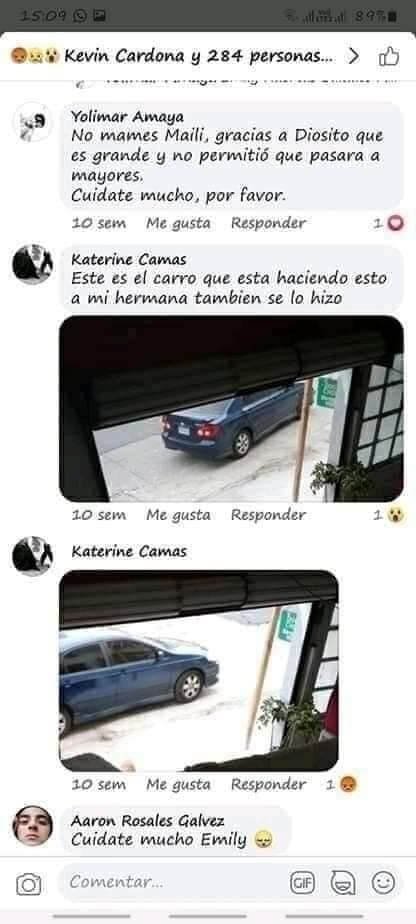 De acuerdo con el testimonio, solo lo ignoró y sacó su celular para tomarle una foto a la placa del carro pero como estaba temblando no pudo tomar la fotografía, avanzó un tramo y se dio cuenta de que la seguía. “El miedo me llenó por completo y por suerte había un puesto de vacunas abierto y entré, explicándole a las señoras que estaban ahí”, la encaminaron a su destino y un amigo la acompañó a su regreso, contó. Al conversar con otra persona, dijo, a quien le sucedió lo mismo se dieron cuenta de que era el mismo sujeto que las acosó. En la publicación adjuntó las fotos del automóvil, similar al que manejaba Sical.