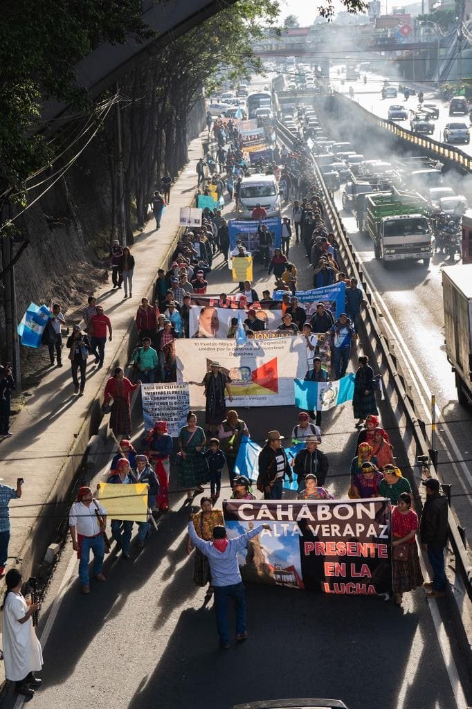 Bernardo Caal, defensor del territorio maya Q’eqchi’, quien estuvo en una caravana que salió del norte del país el 18 de octubre, recuerda que inicialmente pensaron en venir caminando hasta la ciudad, pero luego vieron que eso les tomaría mucho tiempo. Entonces decidieron movilizarse en una caravana en buses, microbuses, automóviles y en motocicletas.
