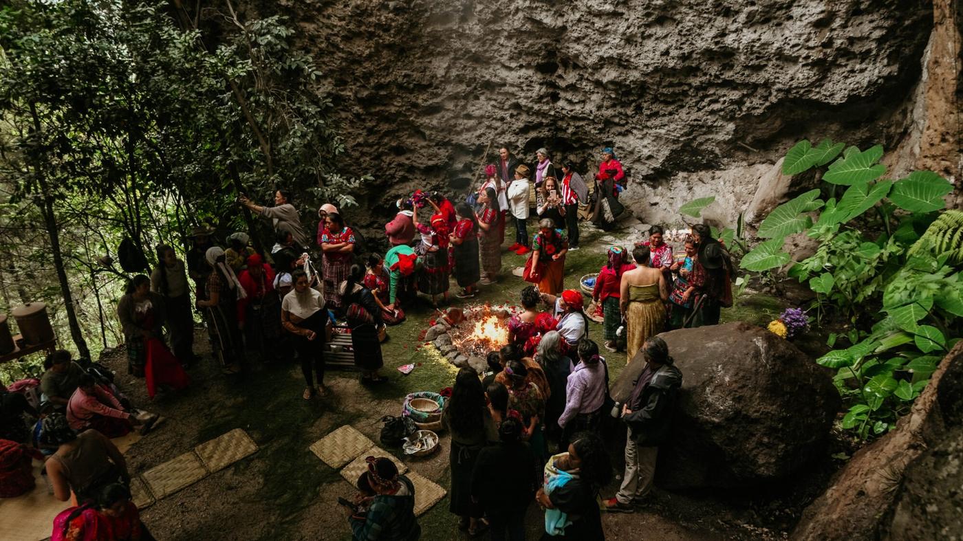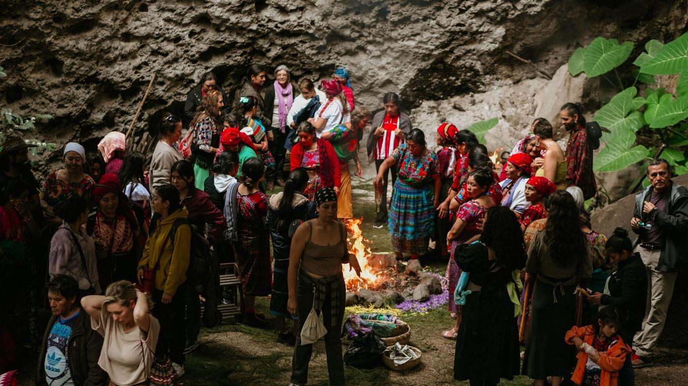 En el sitio sagrado Nima’laj Ab’aj, ubicado en San Marcos la Laguna, Sololá, comadronas y contadoras del tiempo de los pueblos maya Mam, K’iche’ y Kaqchikel fueron protagonistas del solsticio de verano que coincidió con el 4 Kawoq, que representa la energía femenina, el vientre, tuj (temazcal), unión de la comunidad, la montaña, energía de la lluvia, la curandera y el nawal de las parteras.