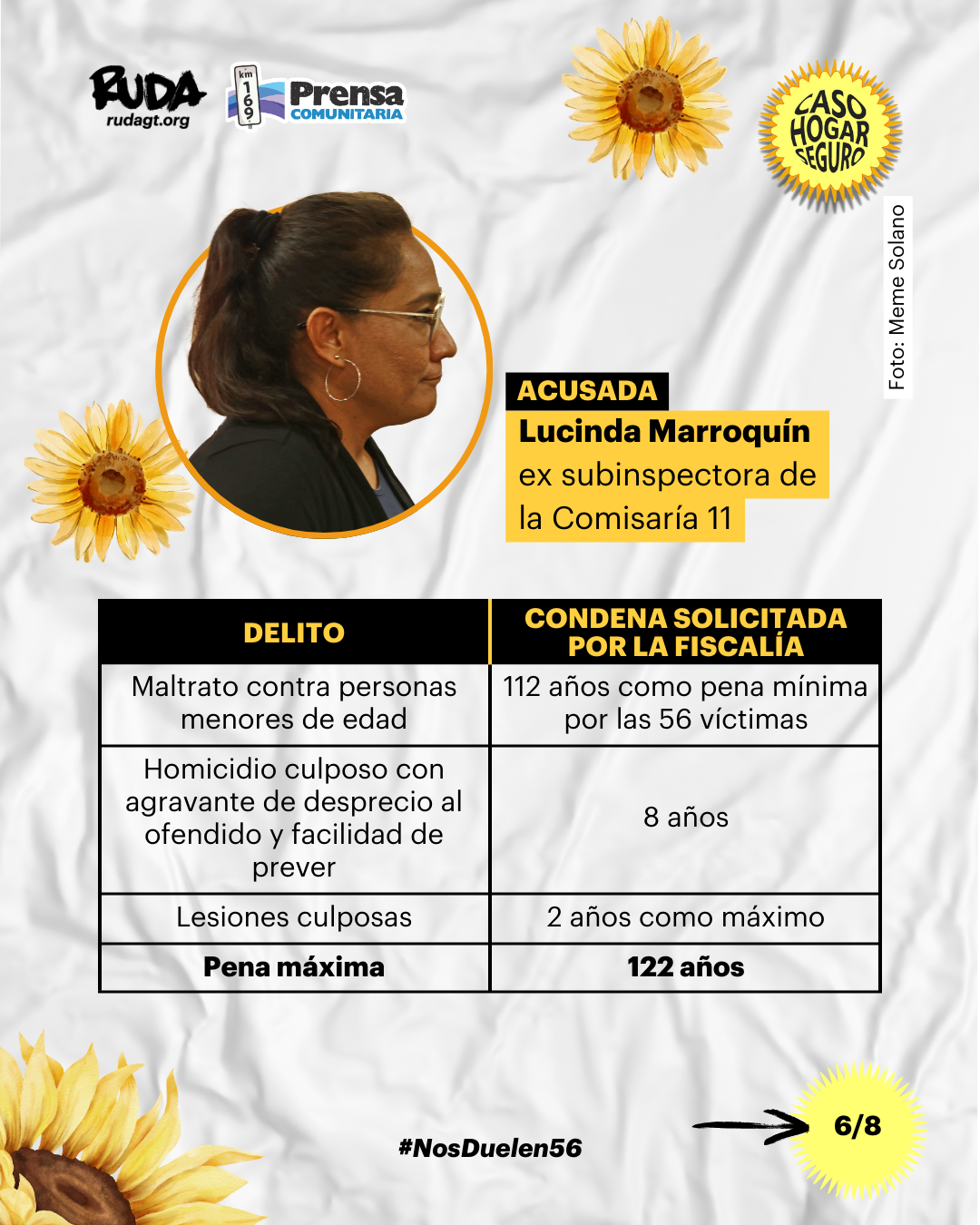 Por ejemplo, para Carlos Rodas, el exsecretario de Bienestar Social de la Presidencia, se solicitó homicidio culposo con el agravante de menosprecio al ofendido y facilidad de prever: 8 años inconmutables. Al recibir una sentencia inconmutable, las y los acusados no pueden solicitar sustituir las penas por otras menos graves o con el pago de fianza.
