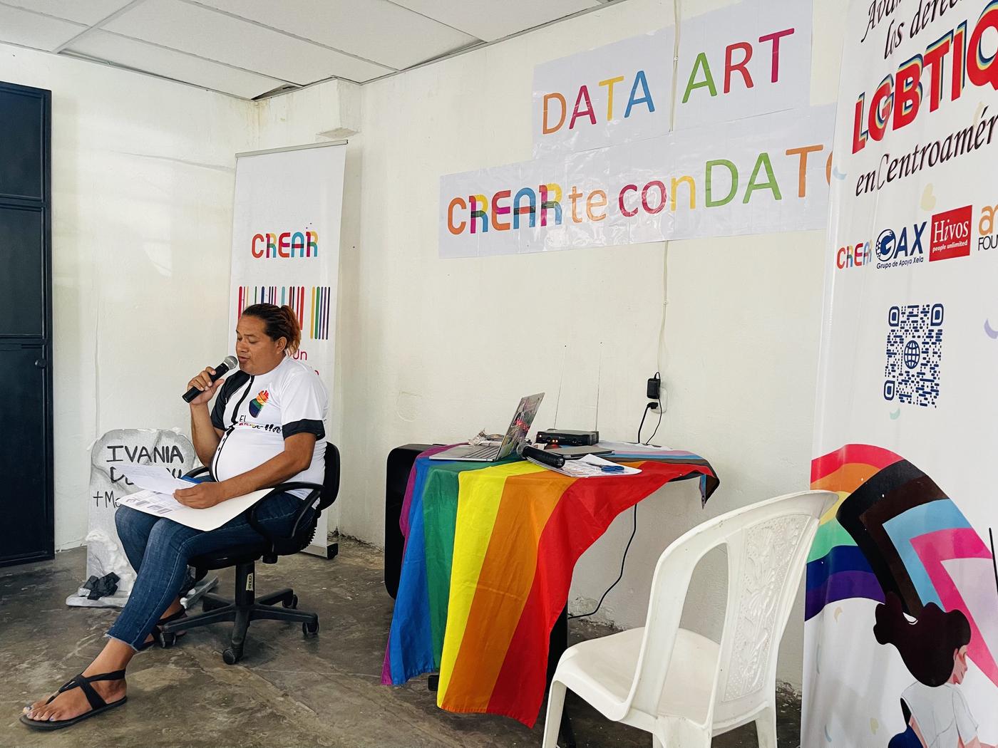 Además, explicó que CREAR, una organización de base comunitaria, resiste desde el departamento de Escuintla, defendiendo los derechos humanos de la población LGBTIQ+ y de las mujeres.