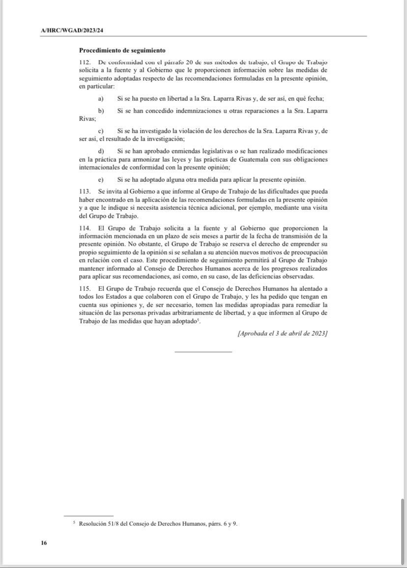 El informe lo debe realizar la Comisión Presidencial por la Paz y los Derechos Humanos (Copadeh) al Grupo de Trabajo sobre Detención Arbitraria del Consejo de Derechos Humanos de las Naciones Unidas y explicar acerca de la condición en la que se encuentra Laparra.