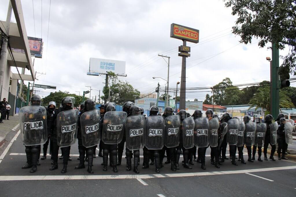 Durante las manifestaciones también se reportó la presencia de agentes de la Policía Nacional Civil (PNC) y antimotines, con un número excesivo. Las y los manifestantes lo catalogaron como “intimidación” pues ellas y ellos sólo ejercián su derecho a la reunión pacífica y manifestación pública.