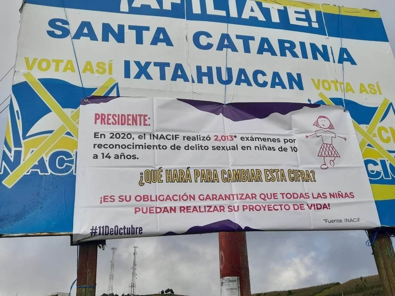 En al menos 21 municipios del país colocaron pancartas para visibilizar la situación y sensibilizar sobre la violencia que sufren las niñas, una acción realizada por el Consorcio de Derechos Sexuales y Reproductivos junto a otras organizaciones como Mujeres Transformando el Mundo y Tierra Viva.