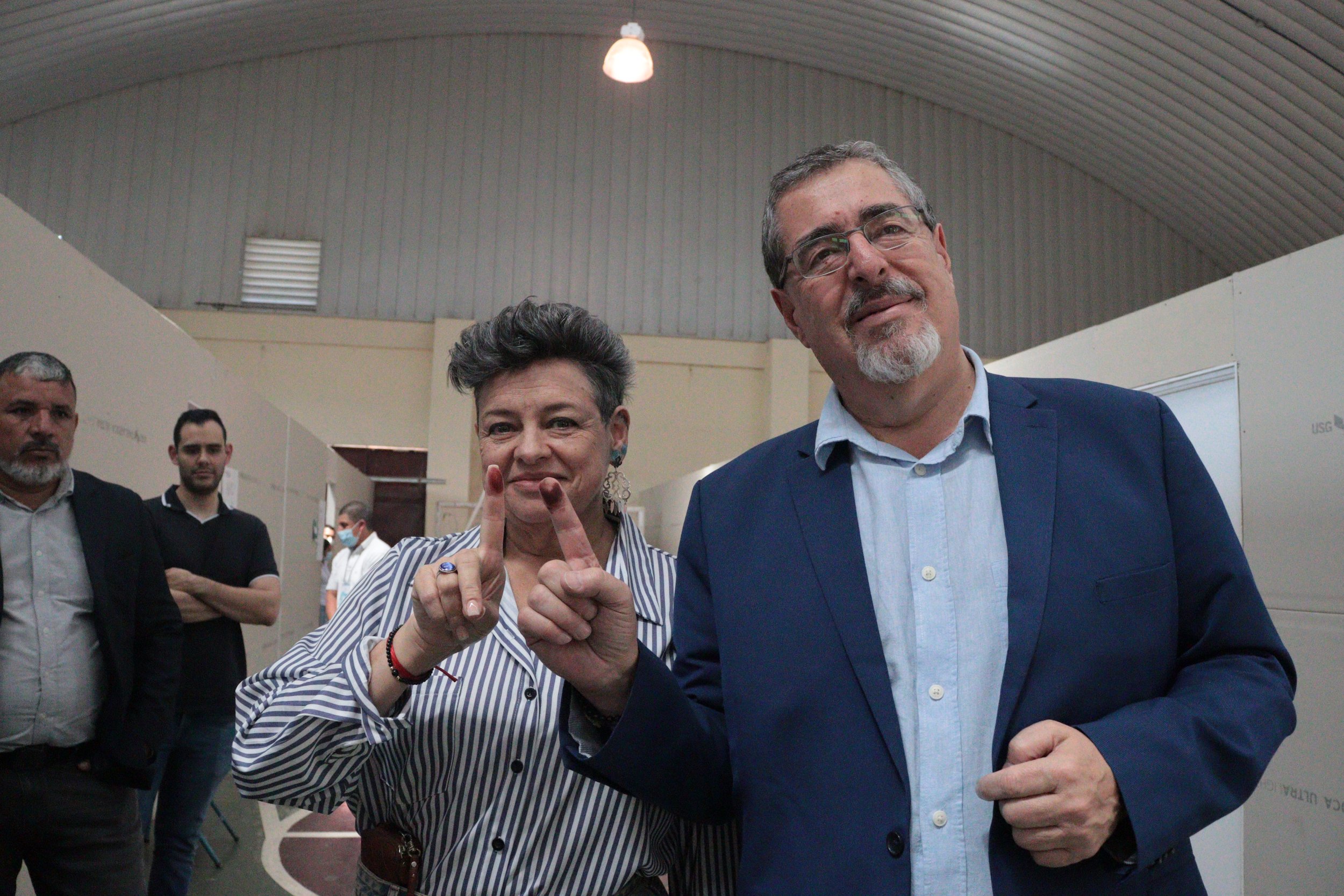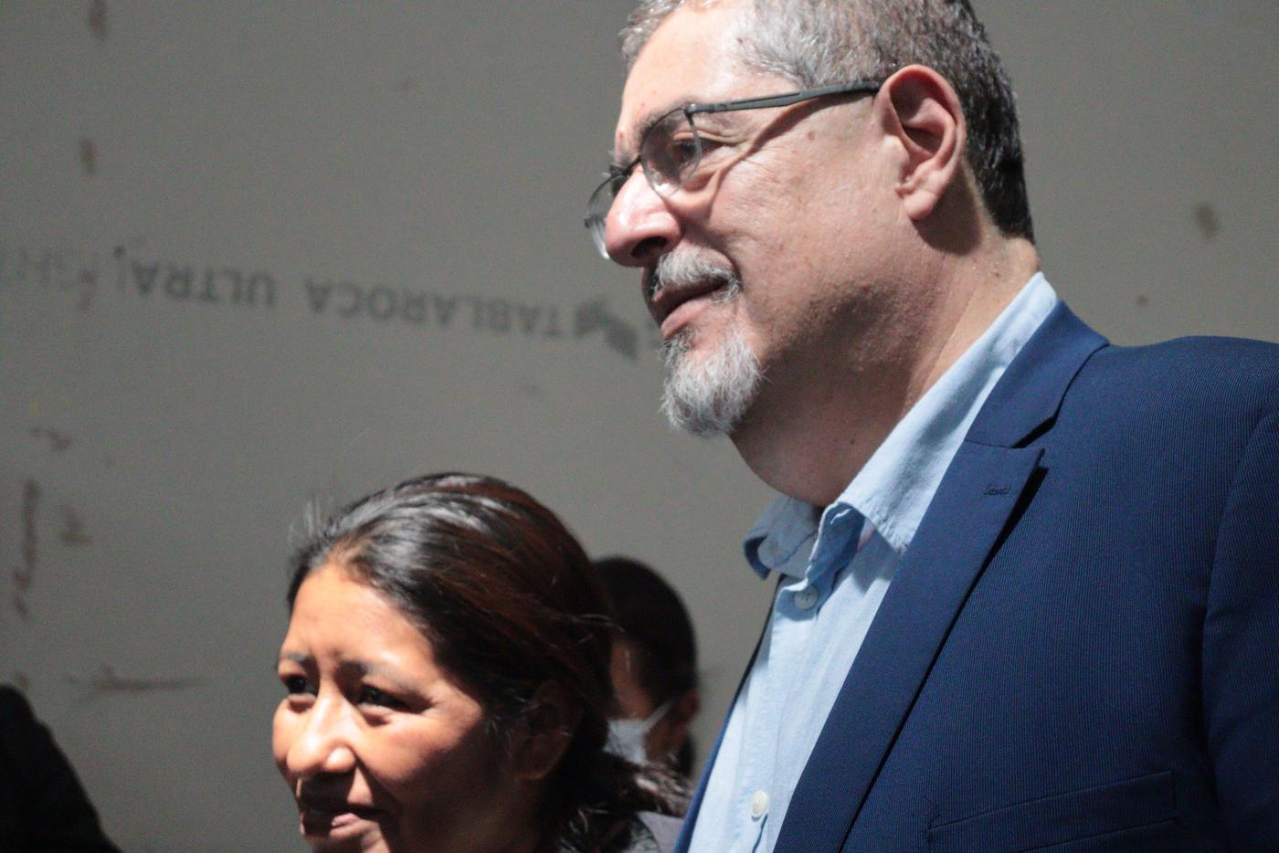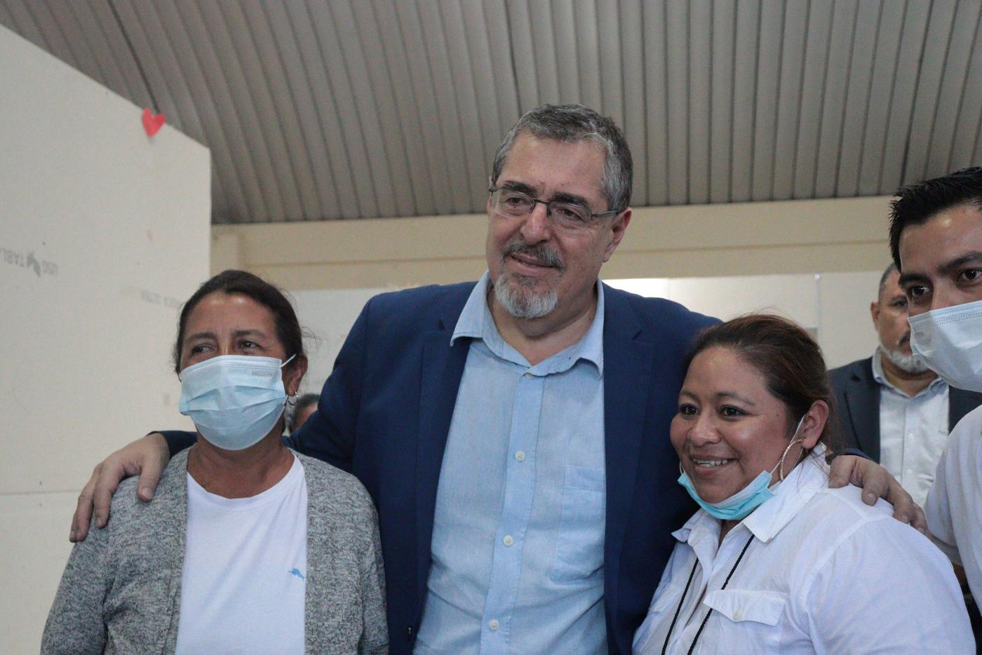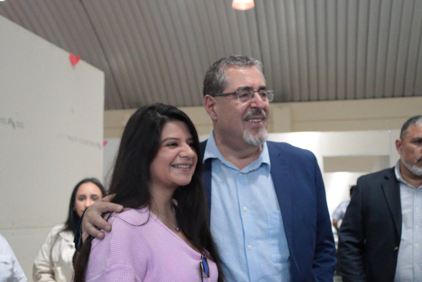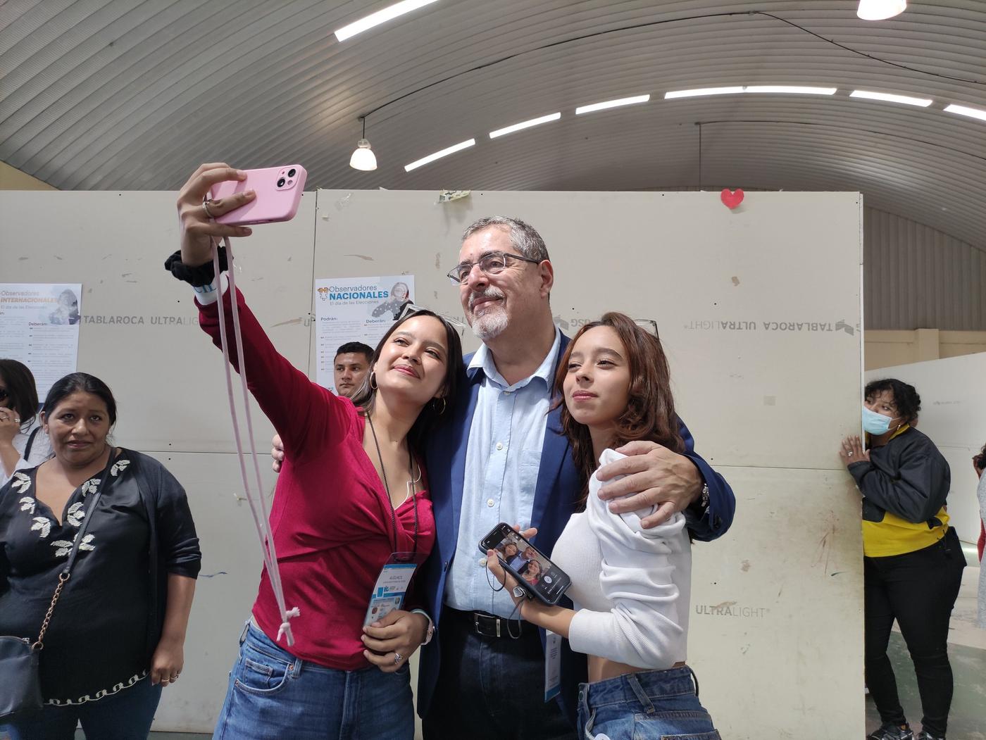 La presencia del ahora presidente electo, Bernardo Arévalo causó gran algarabía y junto a Lucrecia les tomó más de diez minutos salir del centro de votación, ya que les pedían una fotografía del recuerdo, a la que con una sonrisa ambos accedieron.