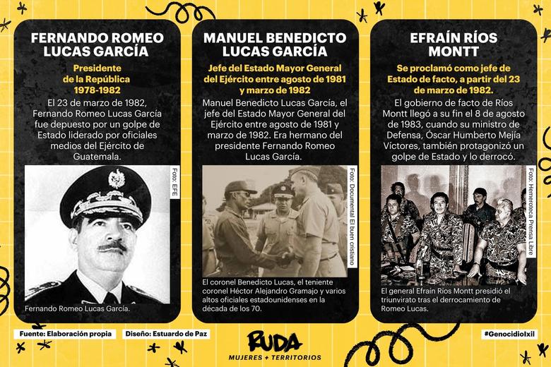 El MP señaló a los exmiembros del Ejército por su presunta responsabilidad en masacres sucedidasentre 1978 y 1982, durante el Gobierno del expresidente Romeo Lucas García.
