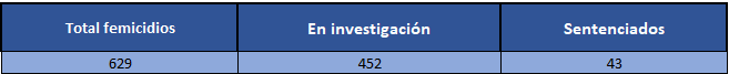 La impunidad en cuanto a las muertes violentas de mujeres reconocidas como femicidios por el Ministerio Público, se puede comparar de acuerdo con el estado de las denuncias.