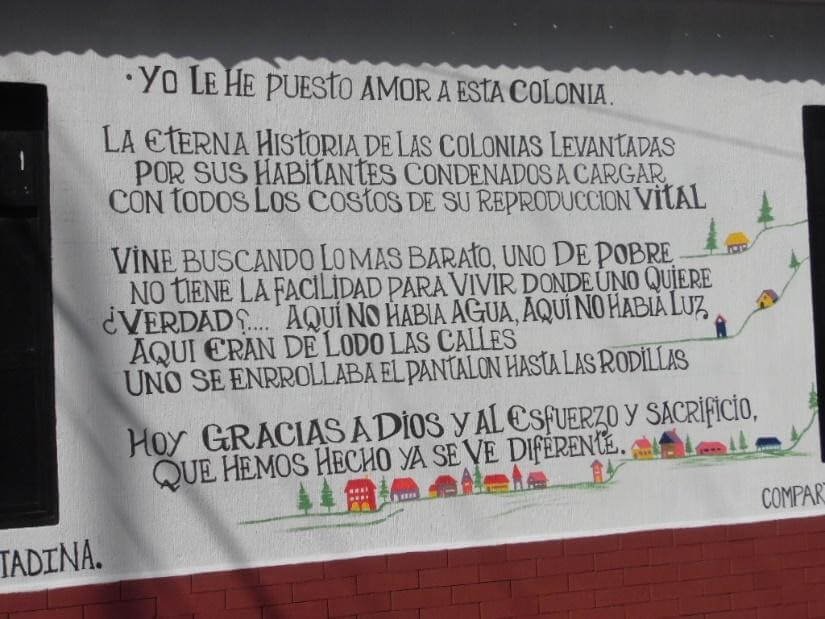 La lucha por tener los servicios básicos en sus barrios, es un elemento fundamental en el proceso de identificación comunitaria de las personas que están asentadas en las periferias urbanas. Las familias tienen circunstancias comunes por su condición de migrante, el trabajo colectivo para acceder a su propia tierra, la lucha por la educación y el acceso a trabajos con salario mínimo para el sostén de la familia.