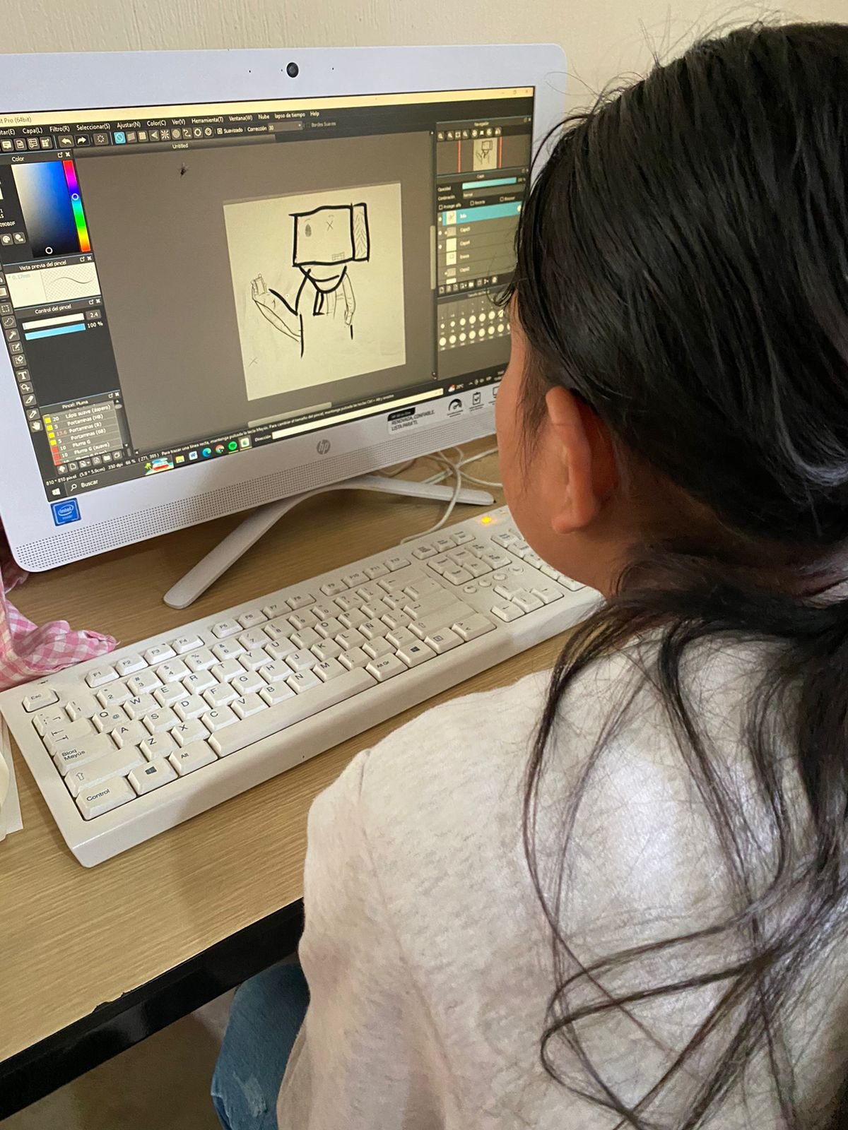 El taller de ilustración estuvo a cargo de la ilustradora y comunicadora Jasmin López. Tomaron una hoja y lápiz para dibujar el objeto o animal que les llamara la atención, para luego pasar la imagen a la computadora y realizar distintos trazos, colores y formas. La habilidad de ilustrar se hizo notar cuando algunas hicieron trazos más elaborados.
