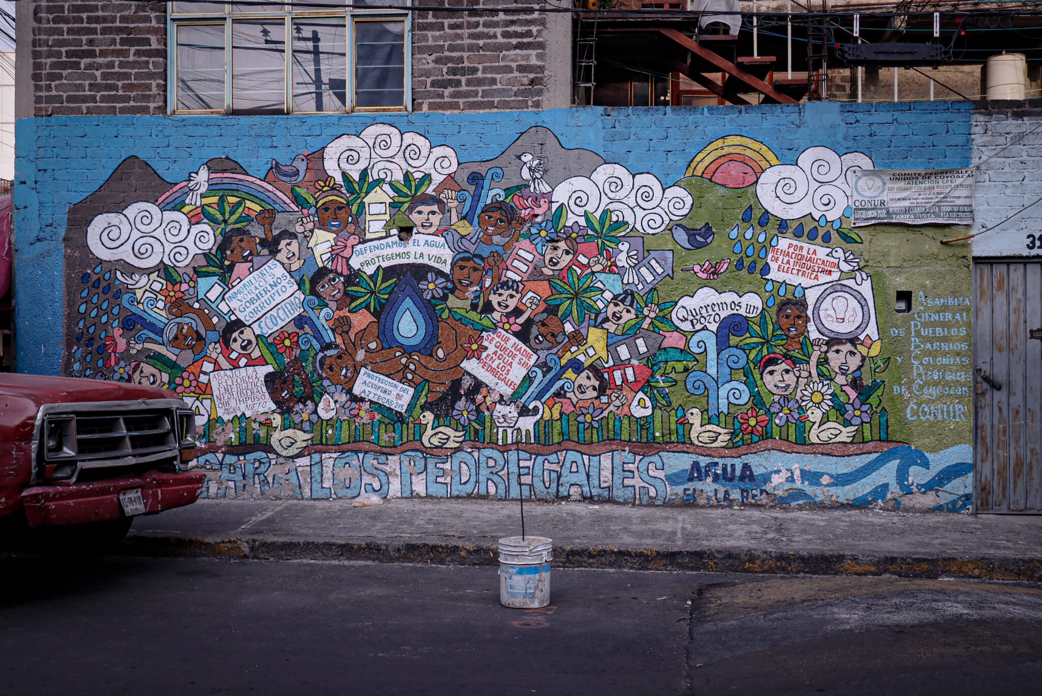 Al otro lado del continente, las vecinas del Pedregal de Santo Domingo, una colonia (barrio) de cien mil habitantes al sur de Ciudad de México, tienen su historia ligada a la lucha por el agua potable. Cuando a inicios del 2015 descubrieron que una empresa constructora trataba al agua como basura y la echaba al vertedero, instalaron un plantón en la calle durante más de dos años. Así fueron pioneras en reclamar su derecho al agua potable de forma organizada en la capital mexicana.
