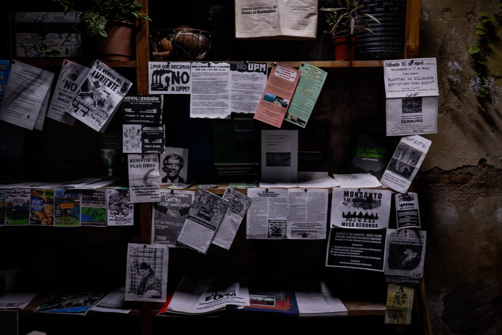 En la cocina de Charamusca chifla la caldera, el agua está lista para llenar los termos de mate. En una tarde de abril de 2024 hay unas quince personas reunidas para la presentación del Archivo Agua y Territorio: una selección de afiches, volantes, documentos, mapas, notas de prensa e investigaciones relacionadas al movimiento socio-ambiental en Uruguay, que coleccionaron Sofía Taranto y Marcelo Cabrera, los guardianes de esta casa.