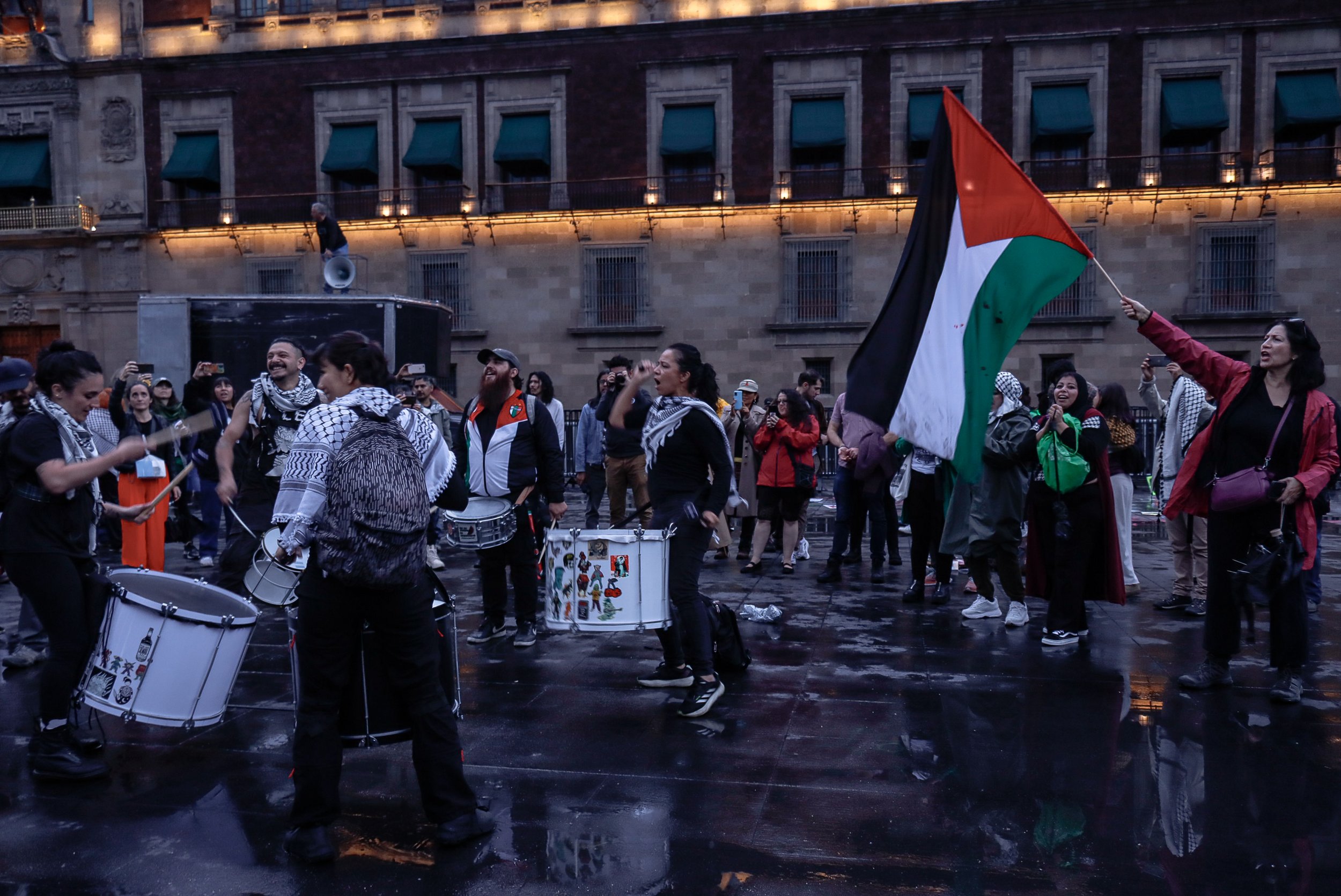 Al llegar a Palacio Nacional, desde donde despacha la presidenta Claudia Sheinbaum, lxs manifestantes realizaron un mitin y exigieron que México rompa relaciones con Israel, y condenaron los recientes ataques de Israel contra Irán.