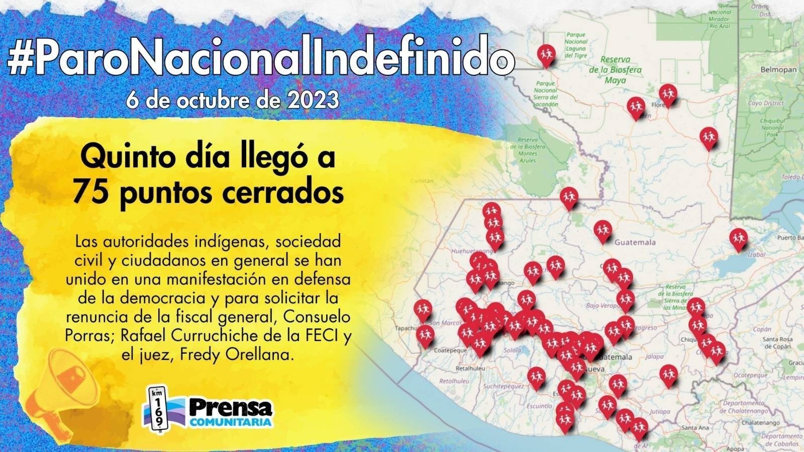 Este viernes se calculan que los puntos carreteros estratégicos tomados por pobladores sumen más de 75 y se siguen sumando la mayoría de los 22 departamentos del país. En la jornada de estas manifestaciones pacíficas resalta la toma de nuevos puntos de la Ciudad de Guatemala que se habían mantenido al margen.