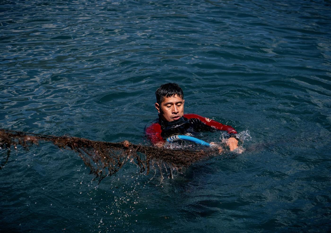 Una mañana de sábado mientras el sol se asomaba entre los volcanes Tolimán y San Pedro, alrededor de las ocho de la mañana, un grupo de mujeres del pueblo Tz’utujil se reunió en el embarcadero con dirección a Panajachel, Sololá. De fondo, el cerro Rostro Maya de San Juan La Laguna se recortaba en el horizonte, mientras un grupo de buzos, vestidos de negro, se preparaba para sumergirse. Sus movimientos eran interrumpidos por turistas y comunitarios que, curiosos, se detenían a tomarse fotografías con ellos.