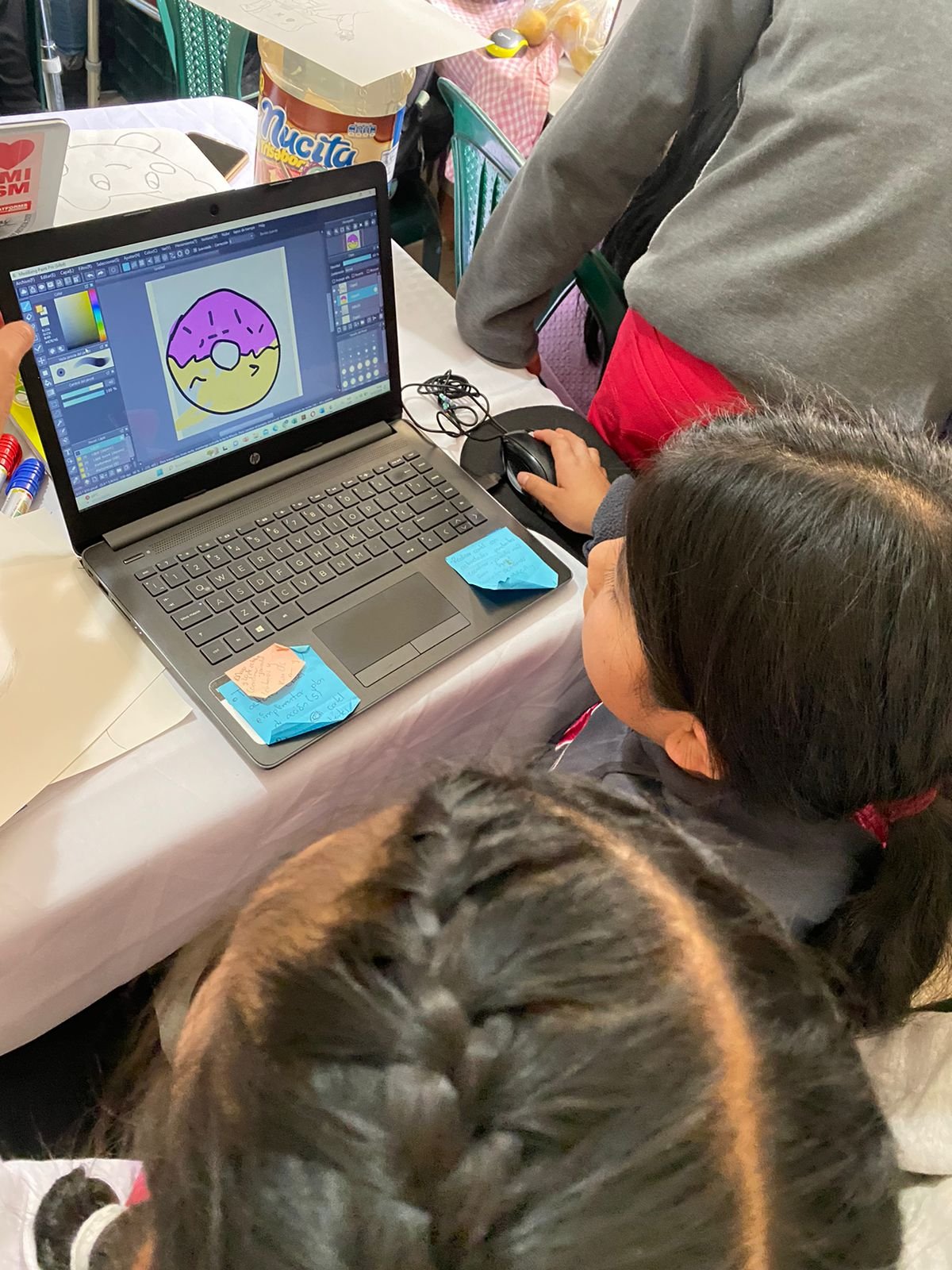 El taller de ilustración estuvo a cargo de la ilustradora y comunicadora Jasmin López. Tomaron una hoja y lápiz para dibujar el objeto o animal que les llamara la atención, para luego pasar la imagen a la computadora y realizar distintos trazos, colores y formas. La habilidad de ilustrar se hizo notar cuando algunas hicieron trazos más elaborados.