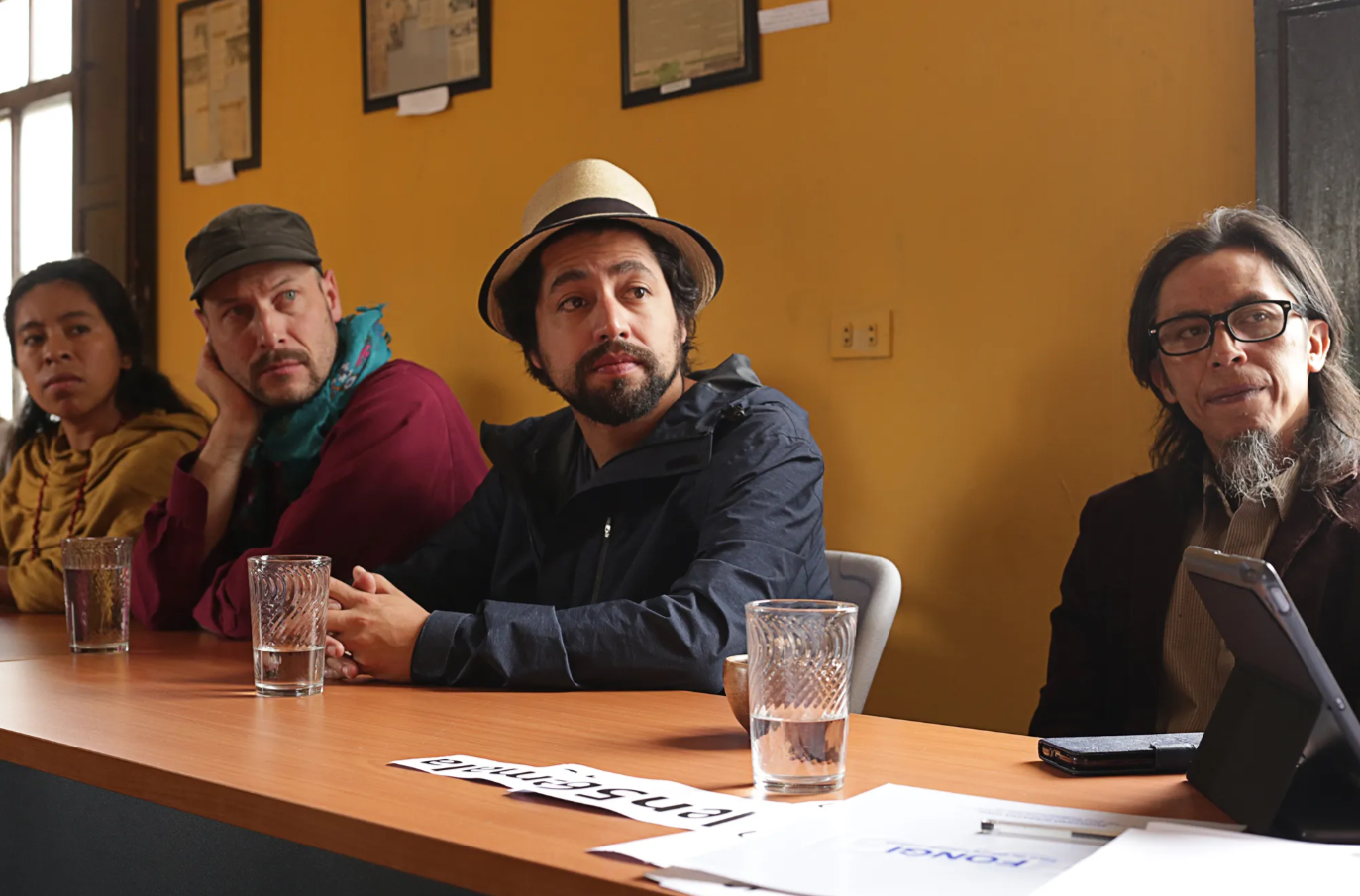 Regina José Galindo, Domingo Lemus, Sara Curruchic, Rebeca Lane, Simón Pedroza, Francois Guindon intercambiaron con las madres y niñas sobrevivientes en un encuentro, ahí se hilaron sus miradas, sus testimonios y su exigencia por justicia. Ellas y ellos aceptaron llevar a distintos lugares la voz y el grito de justicia por las 56 niñas.