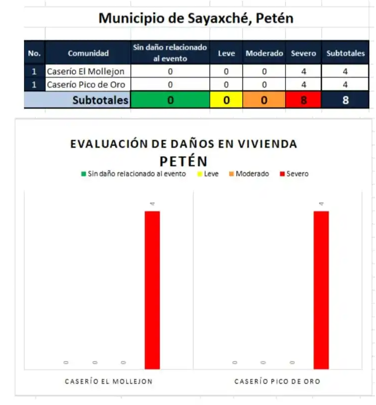 Más de doce horas después, César Martínez regresa a la comunidad acompañado de los otros miembros del COCODE y encuentra todo lo que conoce bajo de agua. Salta de la lancha hacia la única ventana del segundo nivel de su casa de madera. Baja lentamente los pies y patea el agua mientras camina por la habitación. A pocos pasos está su familia, que ha reunido todo lo que tiene sobre las camas para evitar que se moje. Él, su esposa, padre e hijos, en total 10 personas, permanecerán 22 días encerrados en las dos únicas habitaciones secas.