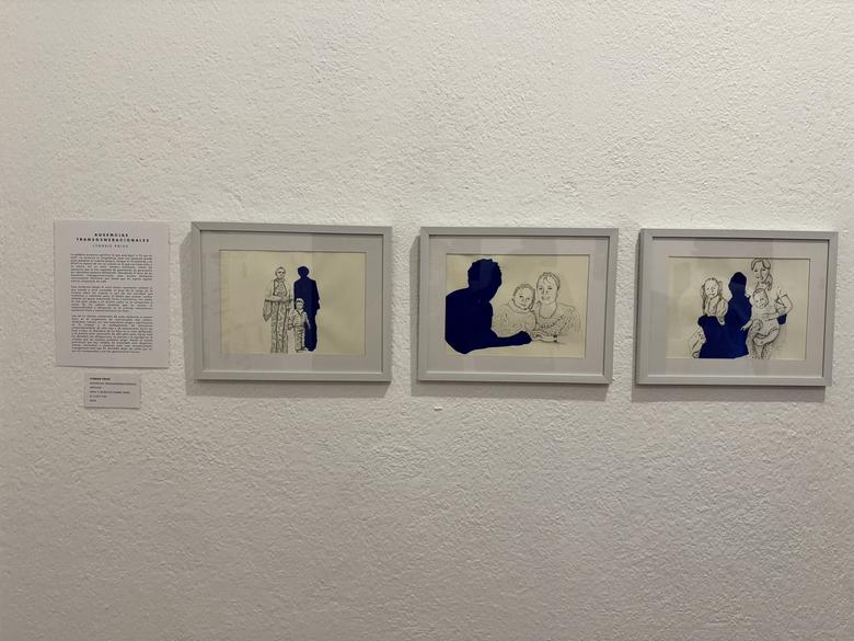 Lyndsie Price, en su obra presentada como un tríptico trabajado en lápiz y acrílico sobre papel, es un testimonio visual de las ausencias paternas que atraviesan generaciones. La obra aborda la perpetuación de dinámicas inconscientes que, colocando sobre las mujeres la carga emocional, económica y física de la crianza, denuncia la normalización de estas ausencias dentro de las estructuras familiares y sociales.